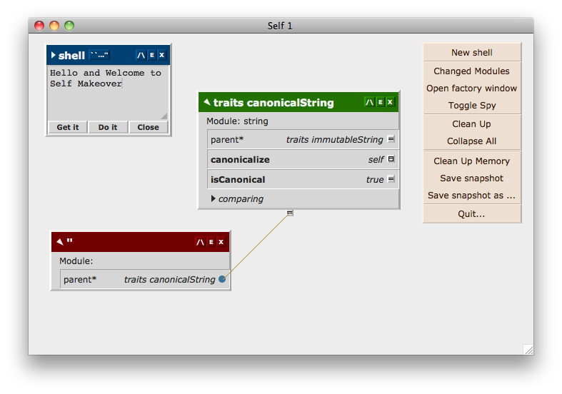 Self’s Morphic interface actually has a lot of charm, but unfortunatly it is in a early NeXT fashion. Lots of grey. Or is that gray? One of the things which scratches an itch for me is cleaning up the interface to make it more comfortable to use.